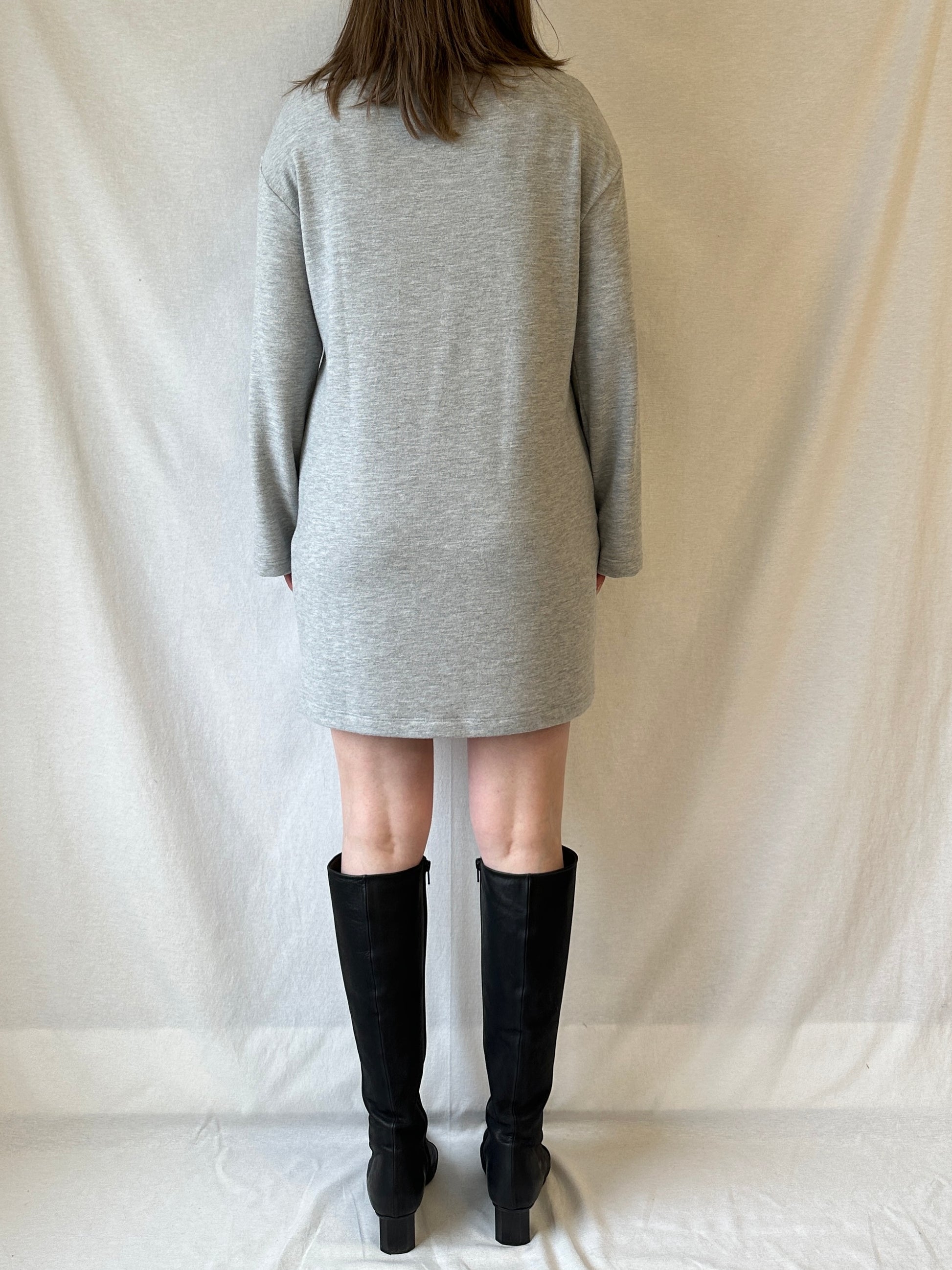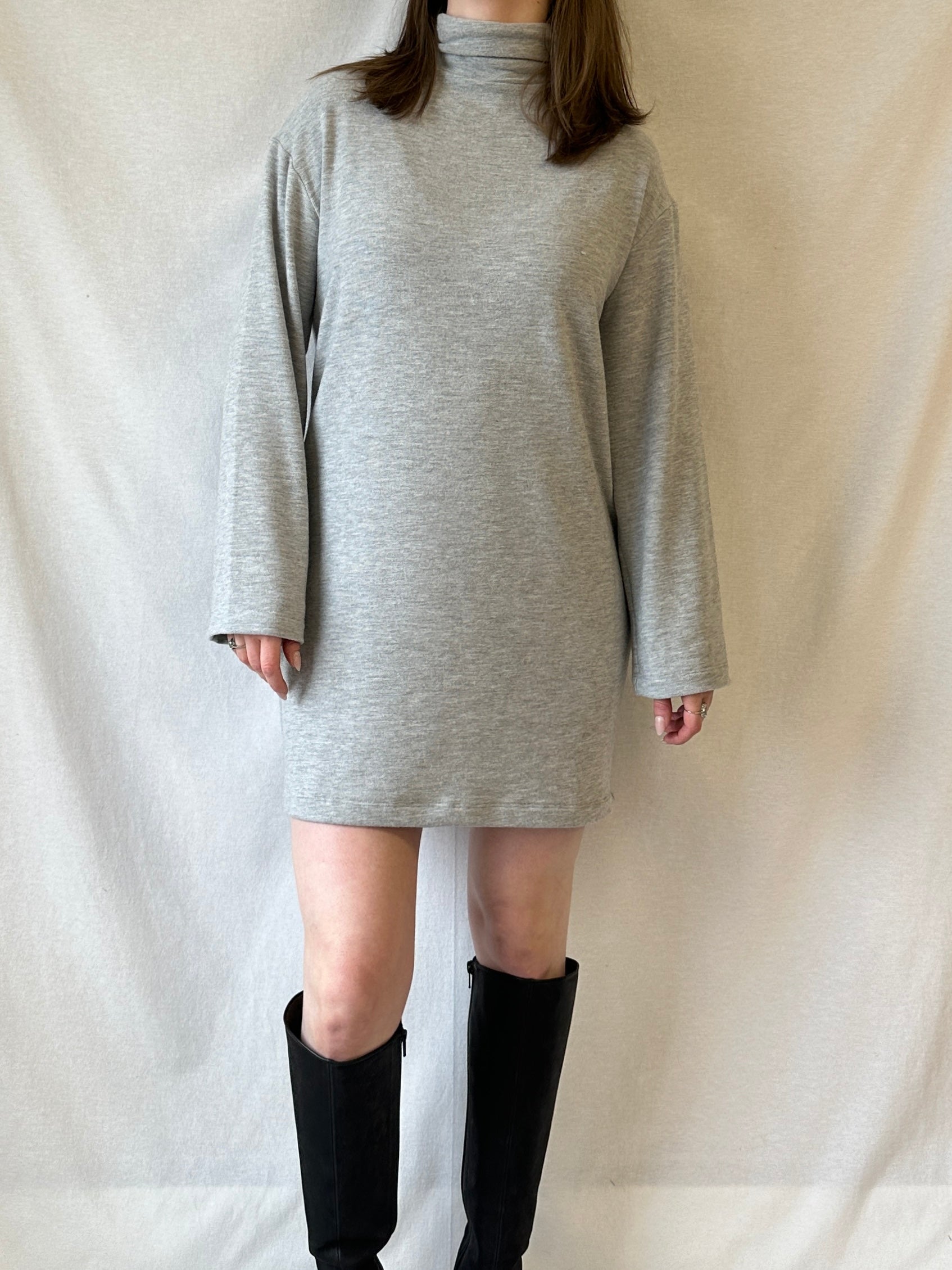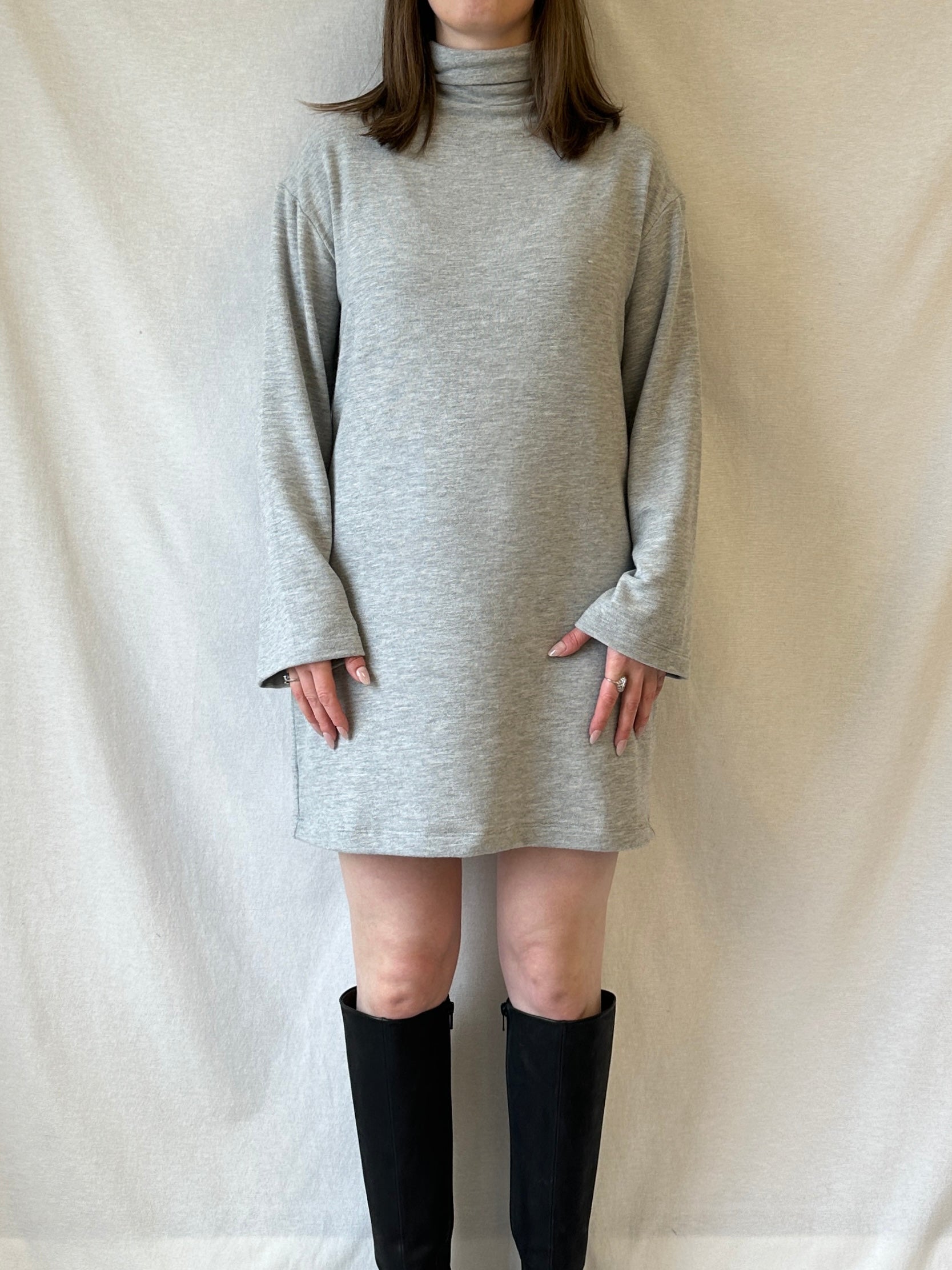 who doesn't love a one piece wonder? this mid length dress is cut in ultra soft brushed jersey and gently swings away from the body.