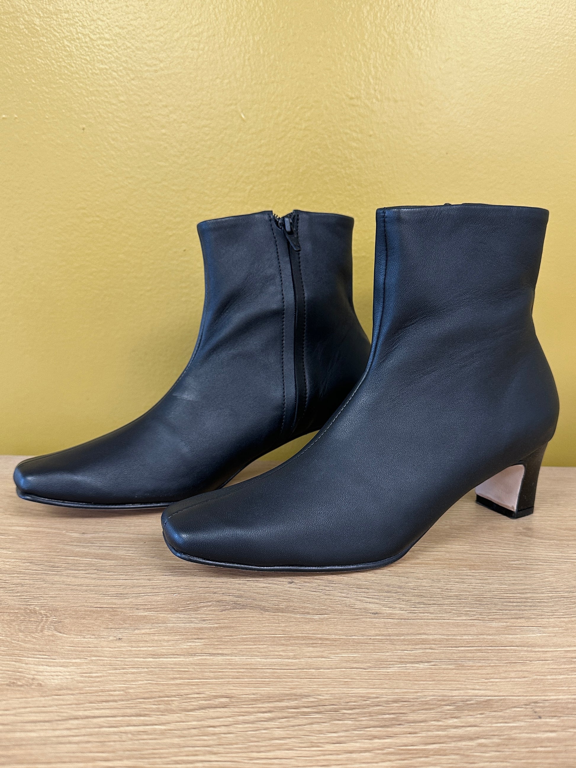 Quintessentially retro. Defined by a square toe, short heel, and soft leather, Bolena is the bootie you’ll want to wear with everything.