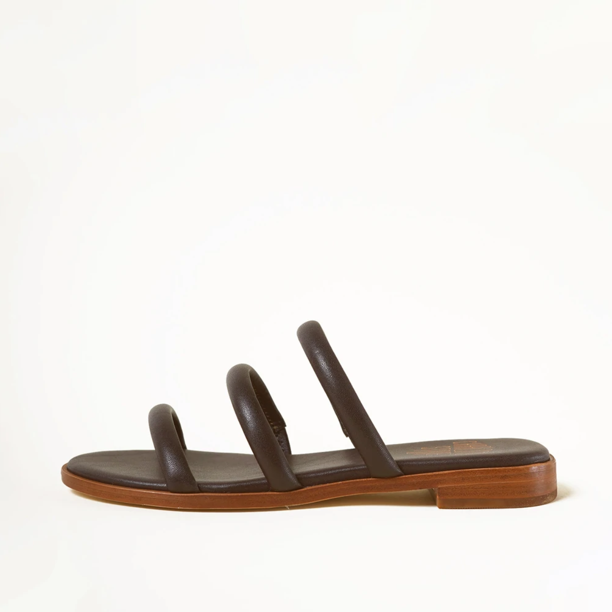 Everybody loves Belle, but this time, she needed to be brought down to earth. Enter Bruna, our just as strappy, just as slide-y, new-old flat pulled straight from the Charlotte Stone archives. We gave her soft puffy straps, our signature memory foam insole, and a luxe buffed leather outsole, so she’s just as fancy as Belle, but you could say she’s a little more flat-tering 🙃