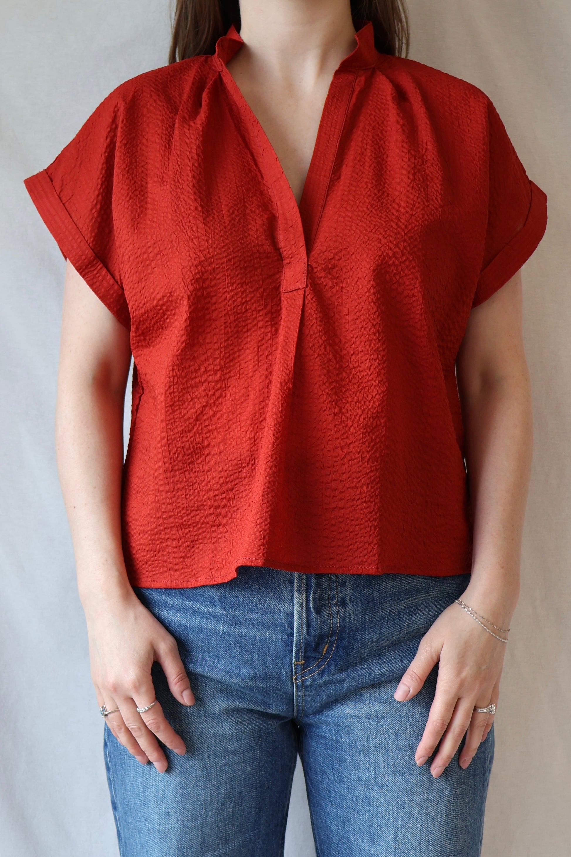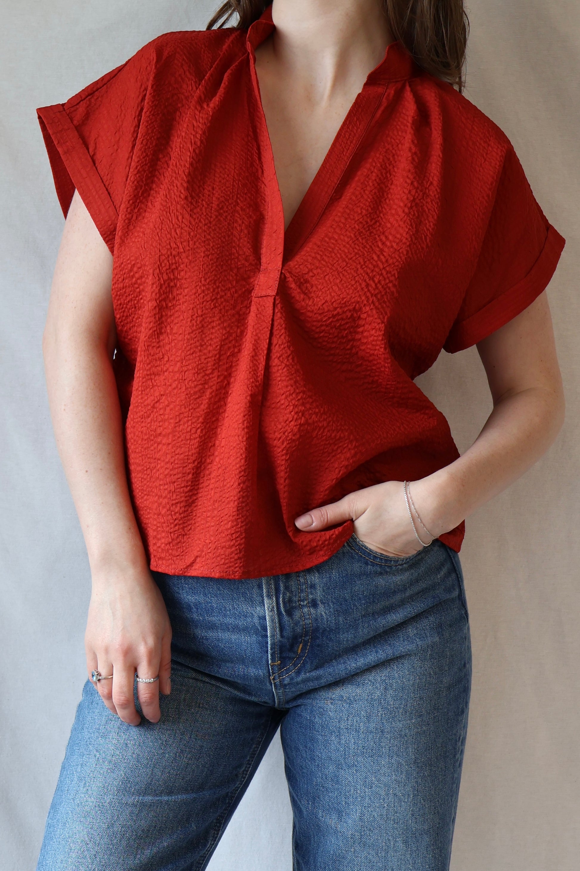 Soft, textured cotton meets a laid-back fit in this effortless top. The warm red shade captures all the cozy vibes of fall, making it perfect for everything from pumpkin picking to relaxed weekend hangs. Easy to wear and hard to resist!