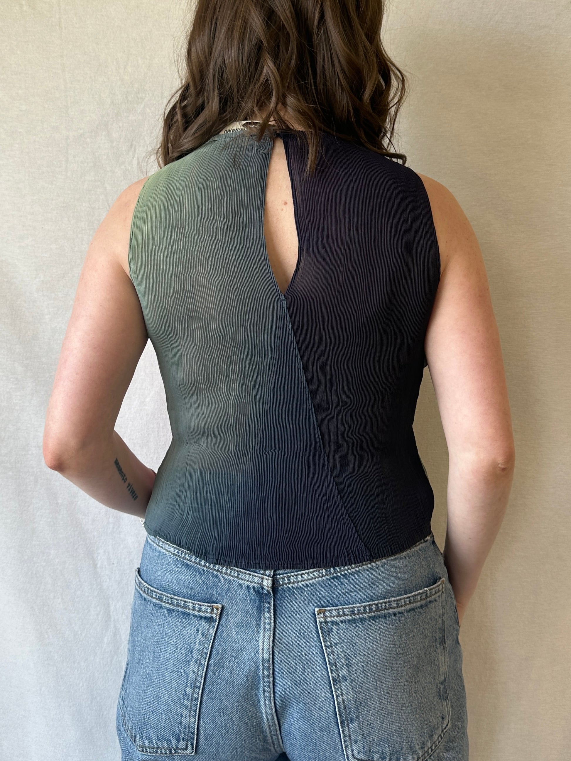A little sheer but not too scandalous. This ultra stretchy mesh top is a fun addition to any wardrobe. This top features a slim fit, keyhole back opening, and the dreamiest watercolor-esque pattern.
