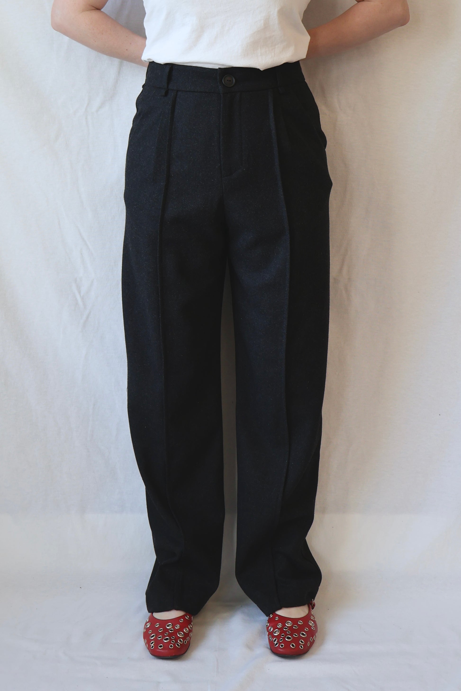The perfect high-waisted, straight-leg tweed trouser designed to combine comfort and elegance. It features a waistband, a fly, and a button at the front, as well as an elasticated section at the back for an ideal fit. Belt loops allow you to add the belt of your choice (belt not included). The pleats and ribbing at the front add a touch of elegance and style. These trousers embody the ultimate in chic. They are lined up to the knee for optimal comfort all day long.