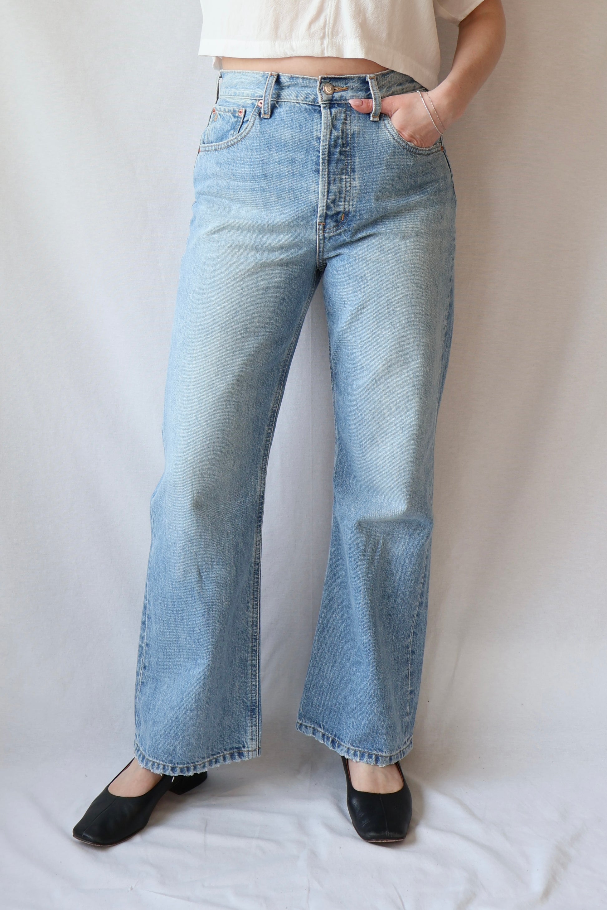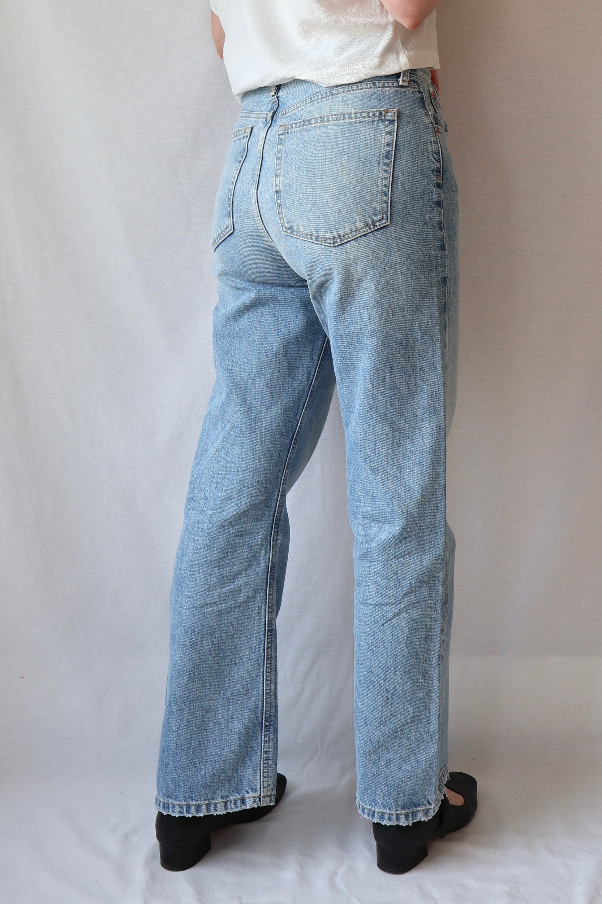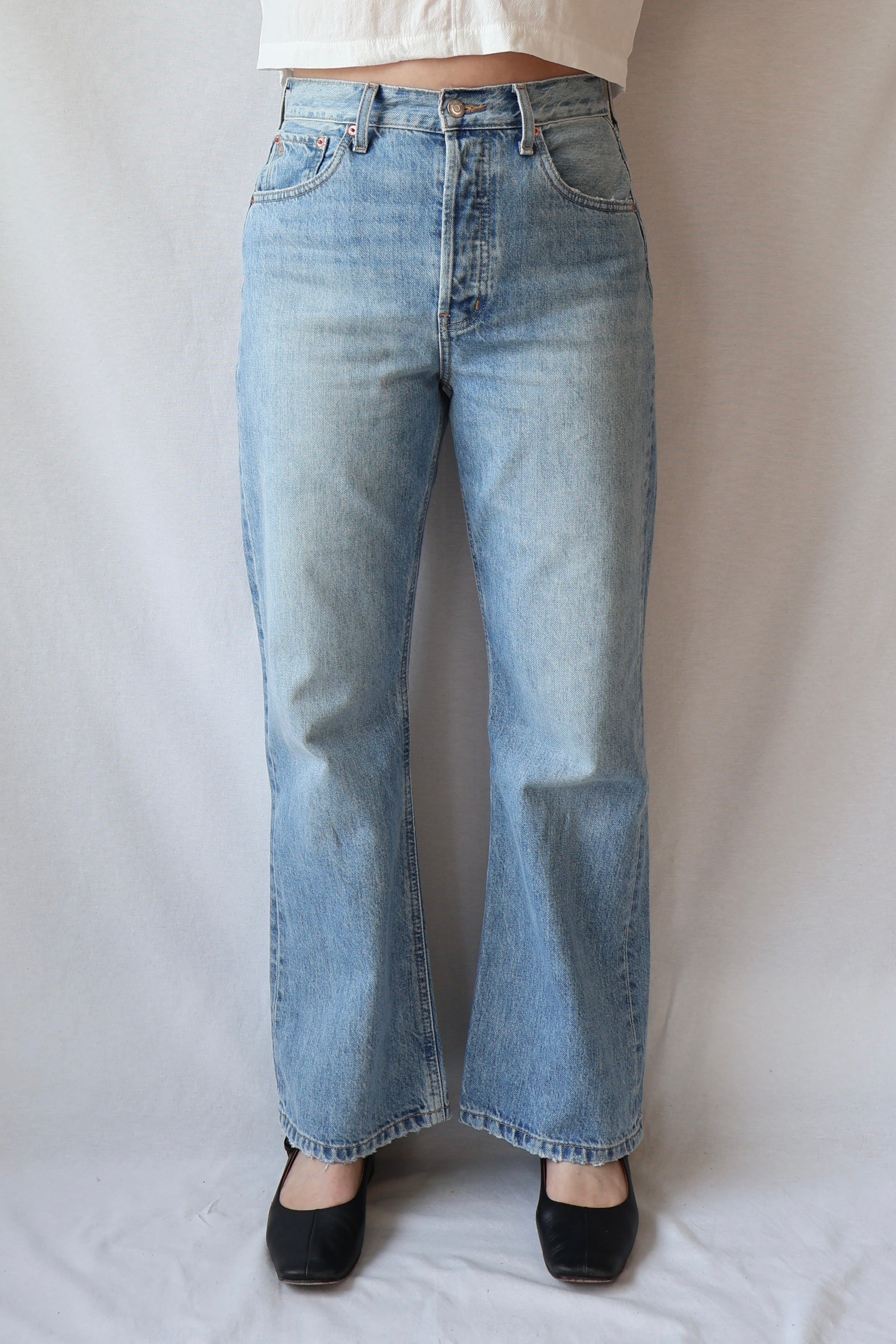 A high-rise straight with a button fly and authentic vintage styling. Fitted through the hip, easy and straight down the leg with a subtle little kick flare.
