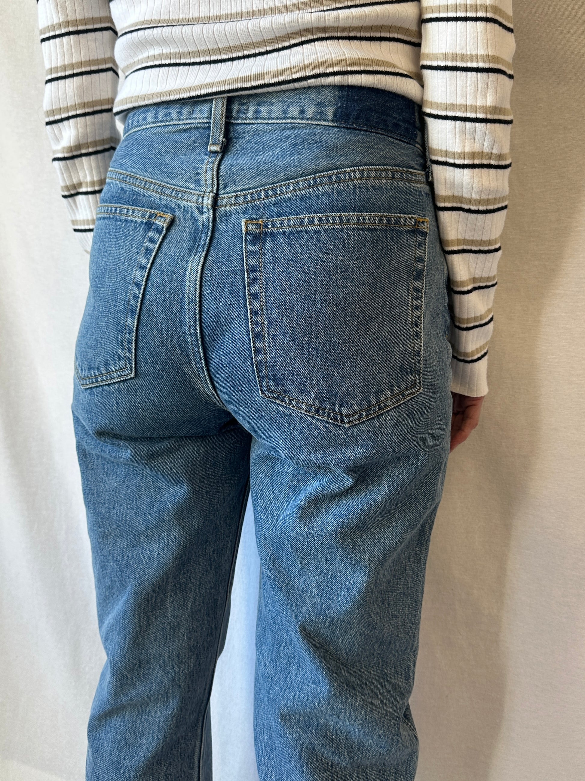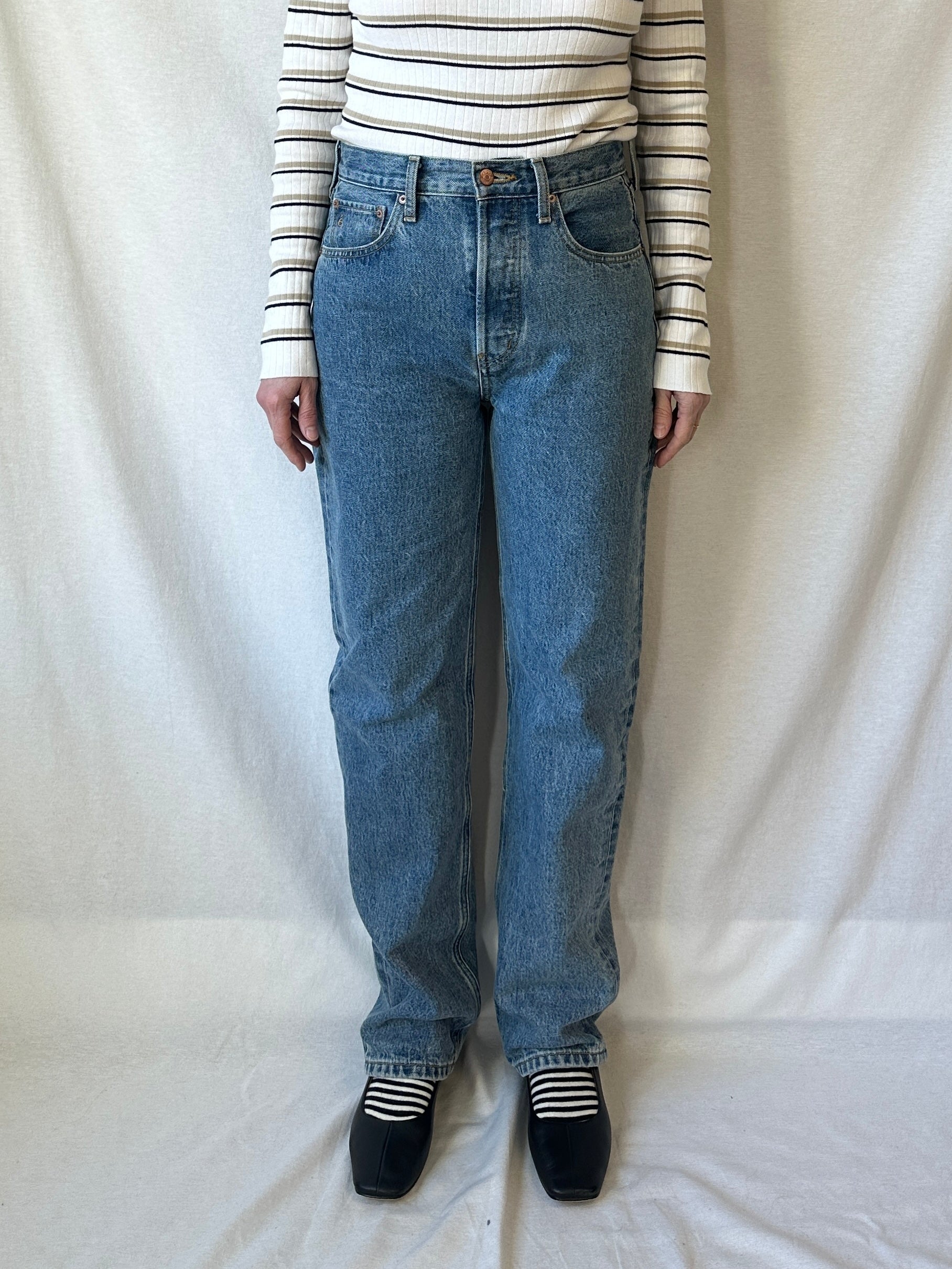 - These are a thick, rigid denim that may take a second to break-in but are well worth it! May be snug on first wears.