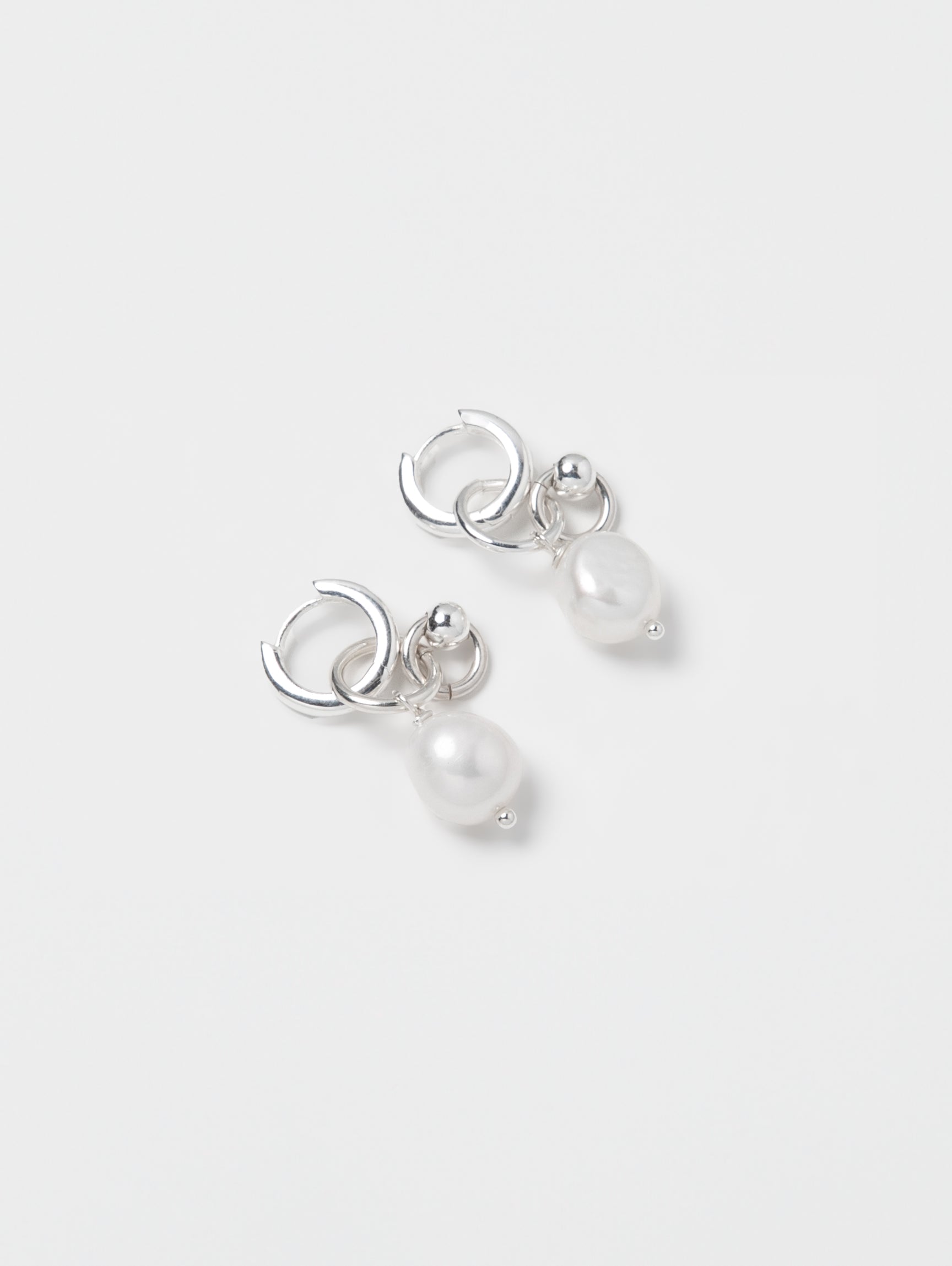 • Recycled 925 Sterling silver huggie hoop earrings with freshwater pearl charms and sterling silver hinges
