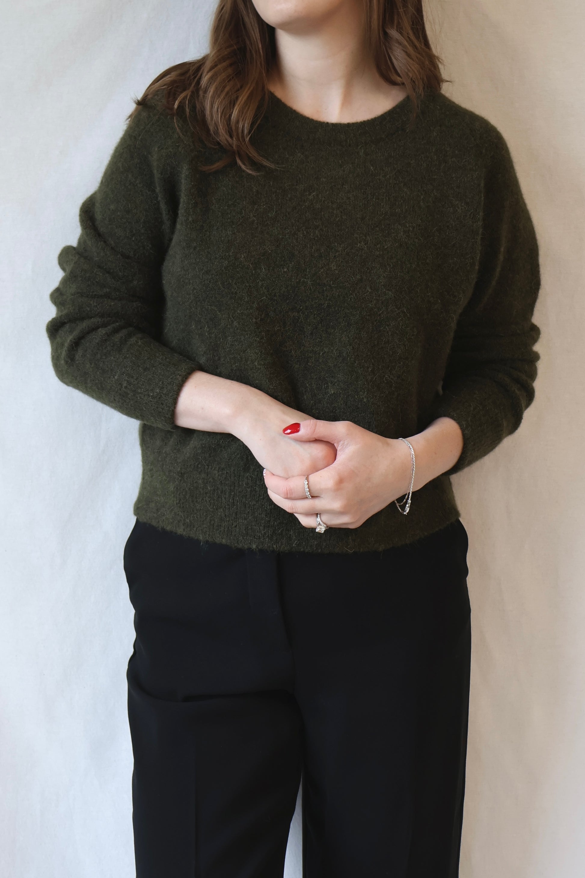 Sweater with a loose fit. Round neck. Main material made from a blend of alpaca wool and wool from the merino sheep.