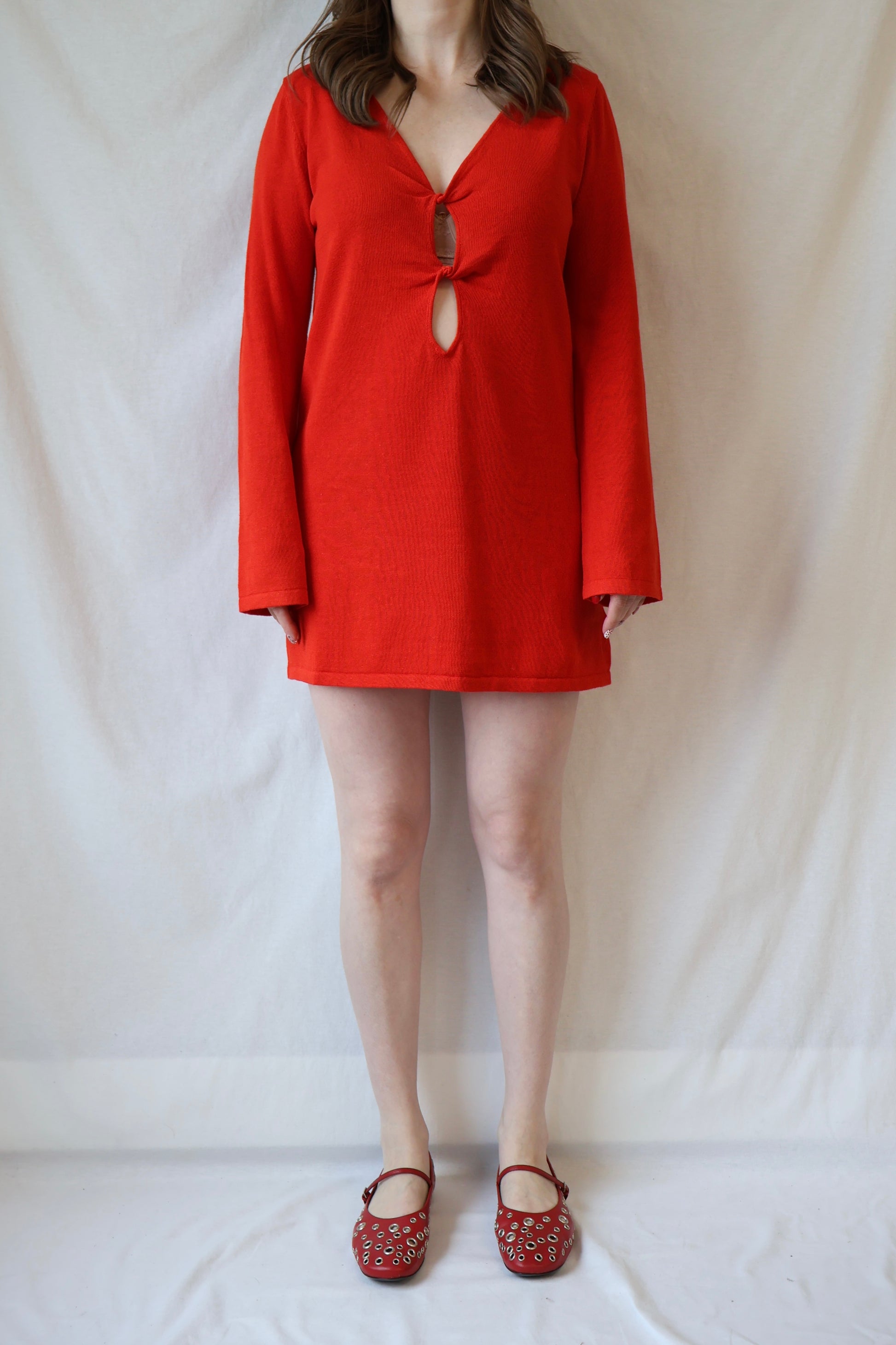 A sculptural long-sleeve shift dress with reversible styling. The Paloma features a deep V neckline with twist cut-out detailing—wear it to the front or back for a versatile silhouette. Crafted in a breathable linen–cotton blend.