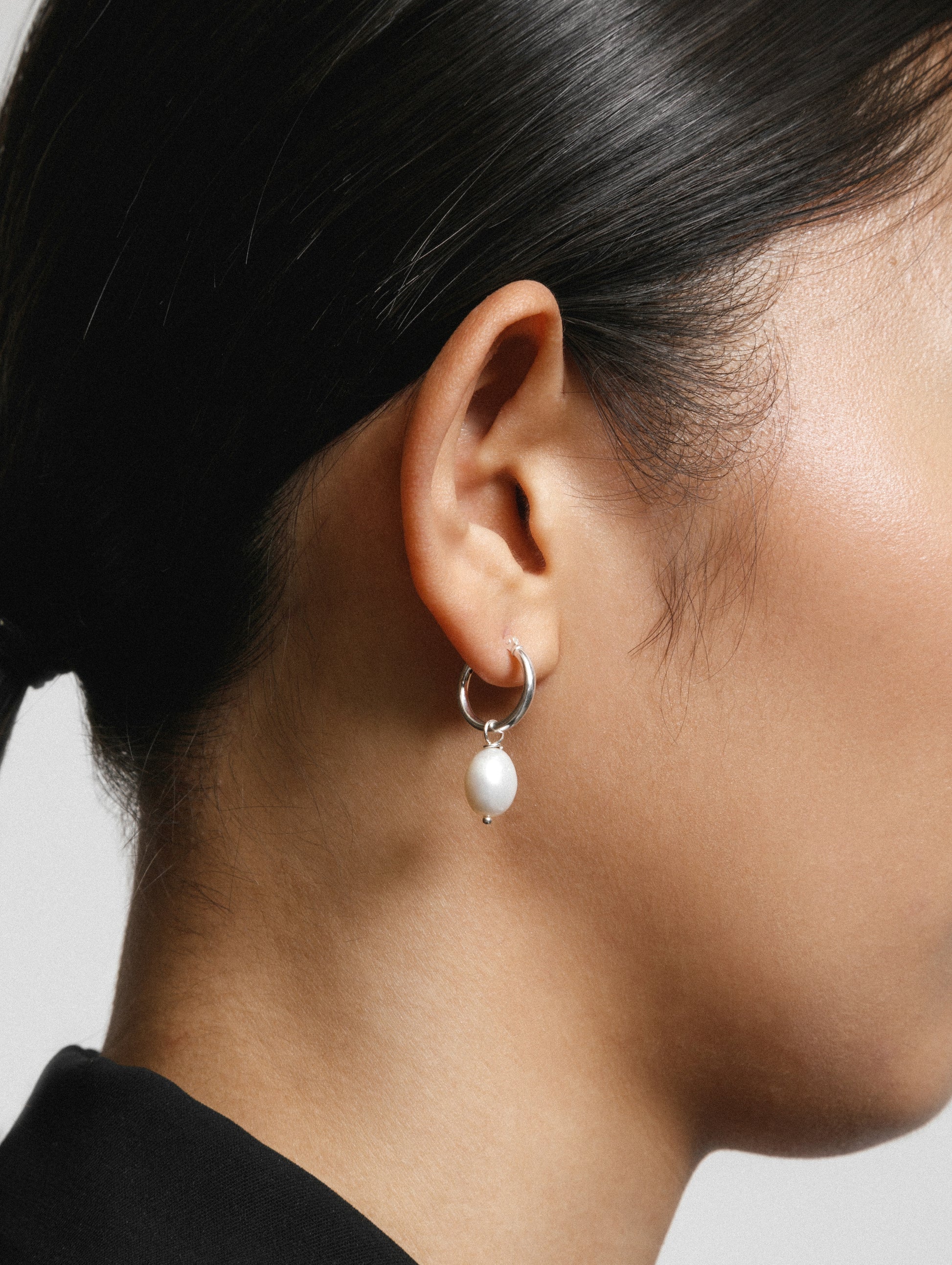 • 925 Sterling silver hinged hoops with removable freshwater pearl