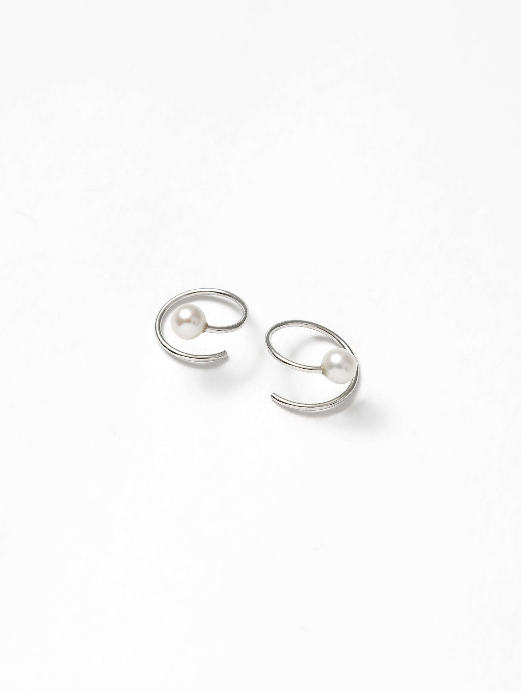 - 925 sterling silver spiral wire earrings with freshwater pearl caps