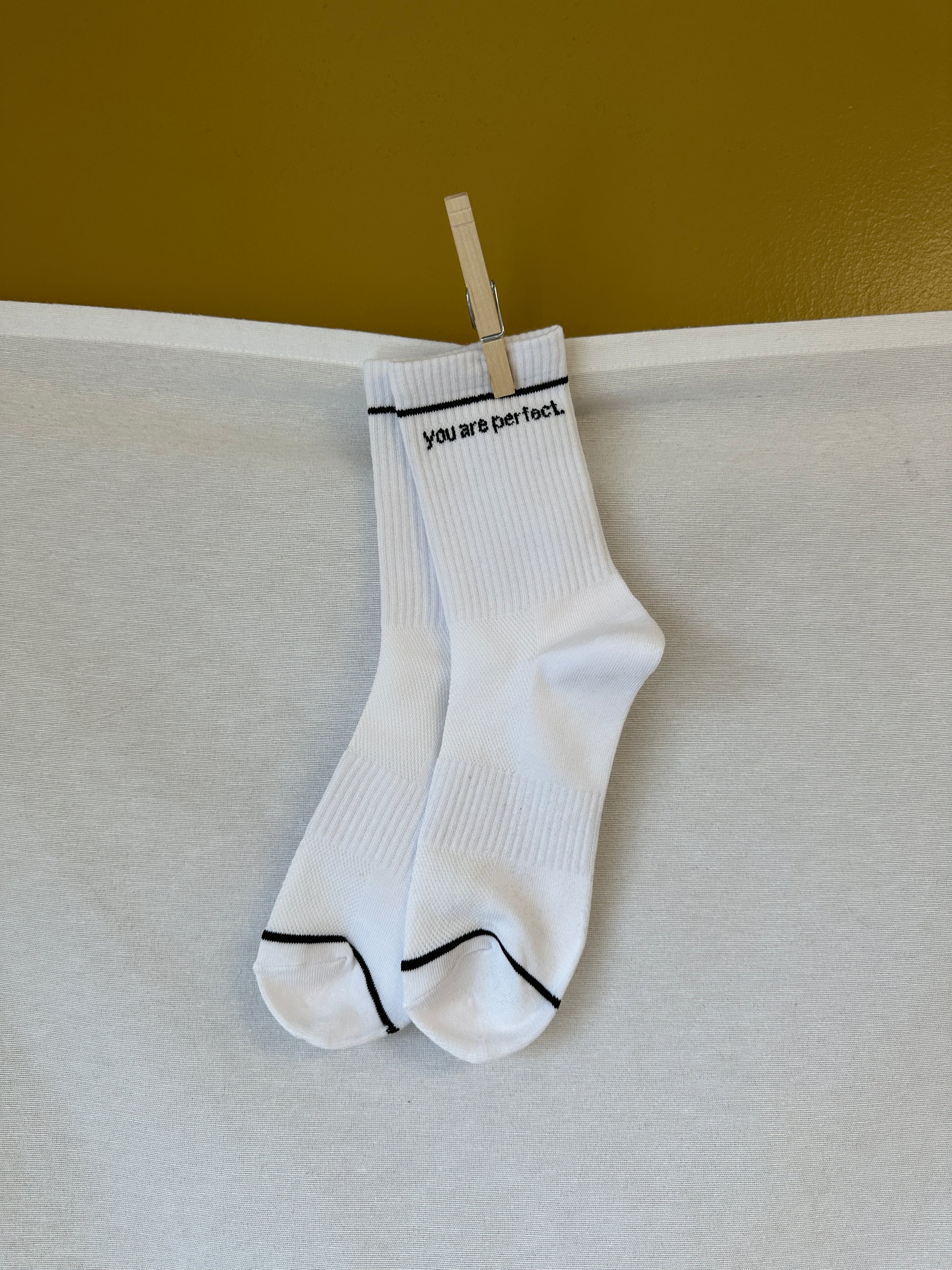 why it’s perfect: socks are a necessity so choose a pair with positivity. you are perfect.