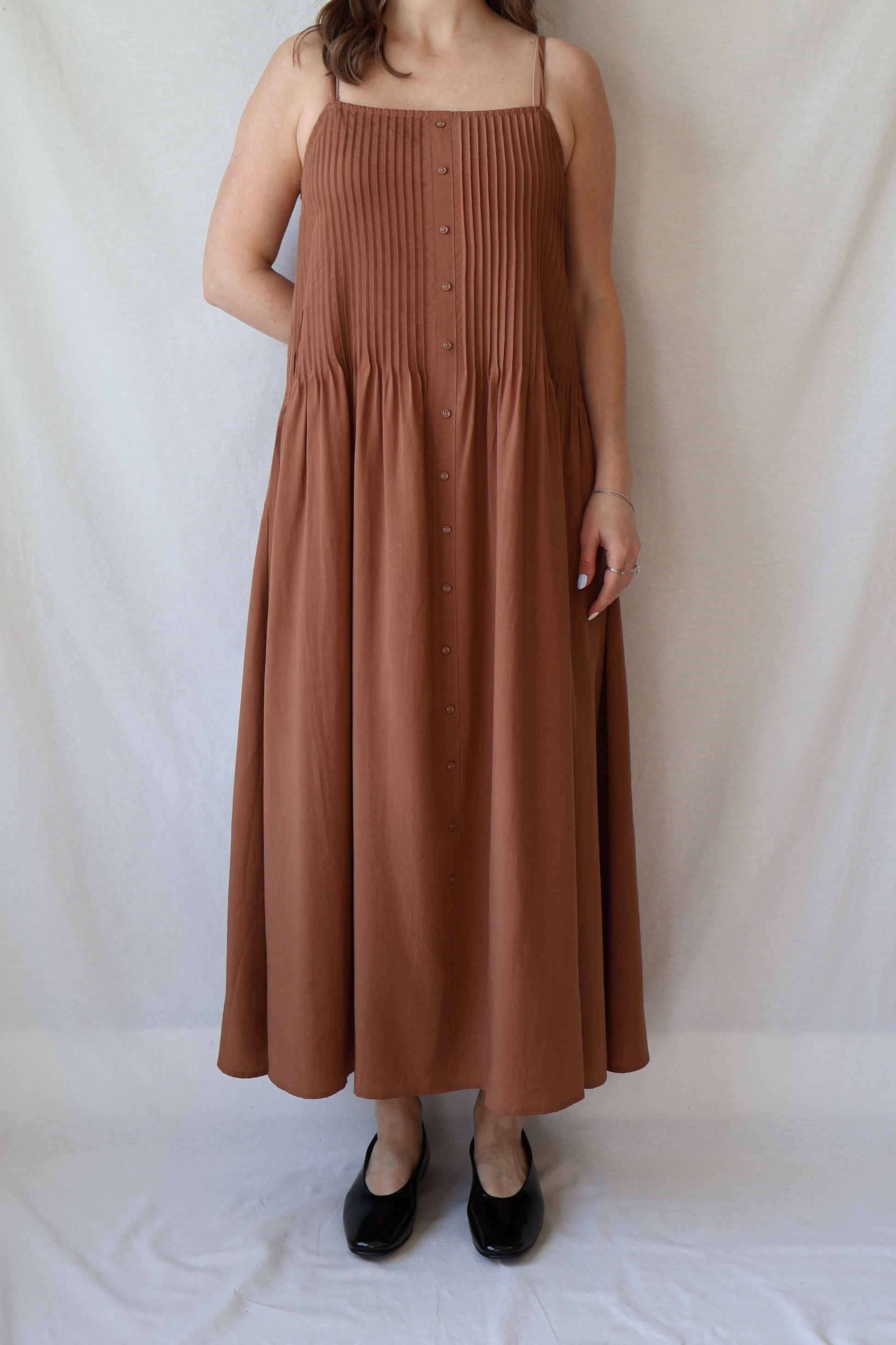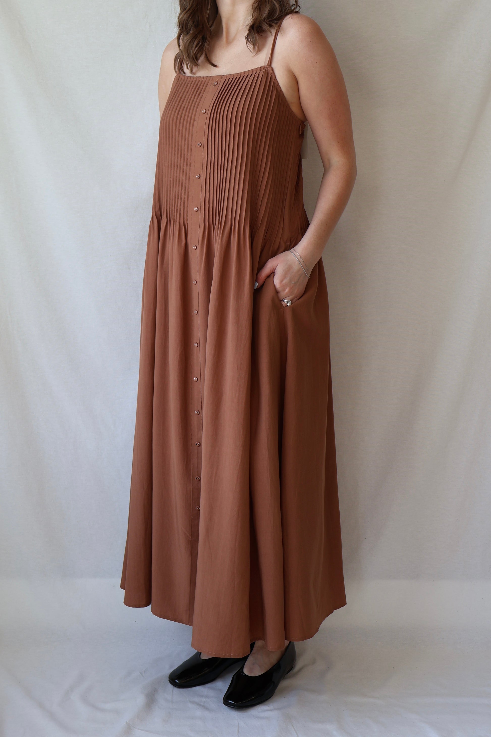 A sweet and simple dress ready for whatever. Pleated top detailing adds texture and interest. A subtle drop waist keeps it on trend too. Features side zip closure, adjustable straps, and pockets (of course.)