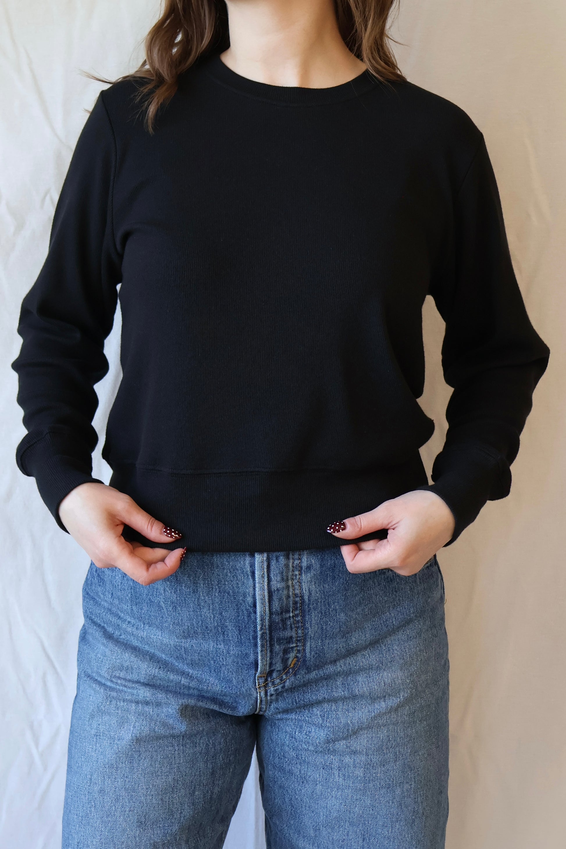 based off of our bestselling tyler silhouette, the stef pullover lends a slightly closer fit while still sitting away from the body. made of a luxe ribbed cotton, it's the perfect marriage between a sweatshirt and a classic long sleeve tee. a year round staple, trust us.
