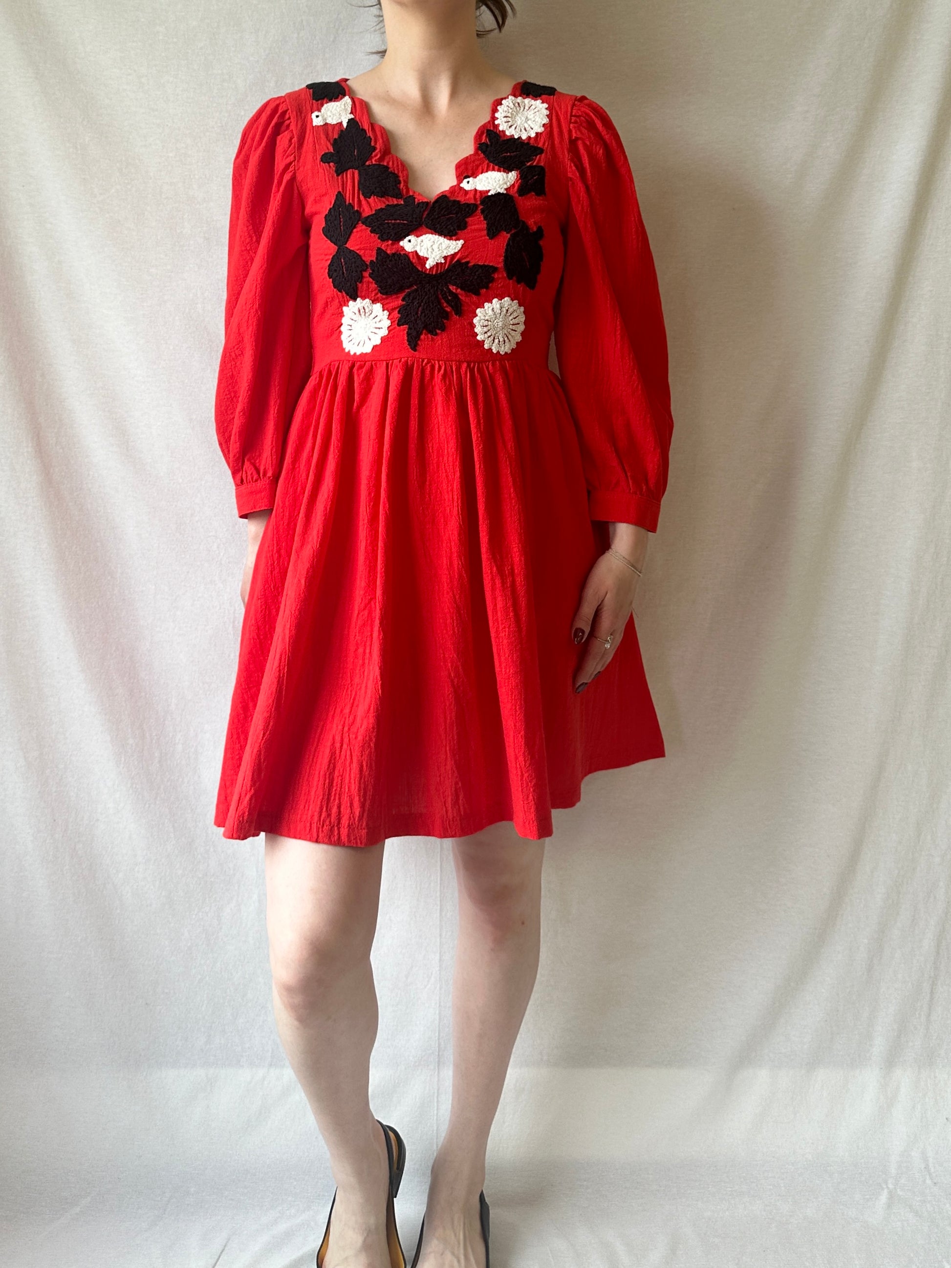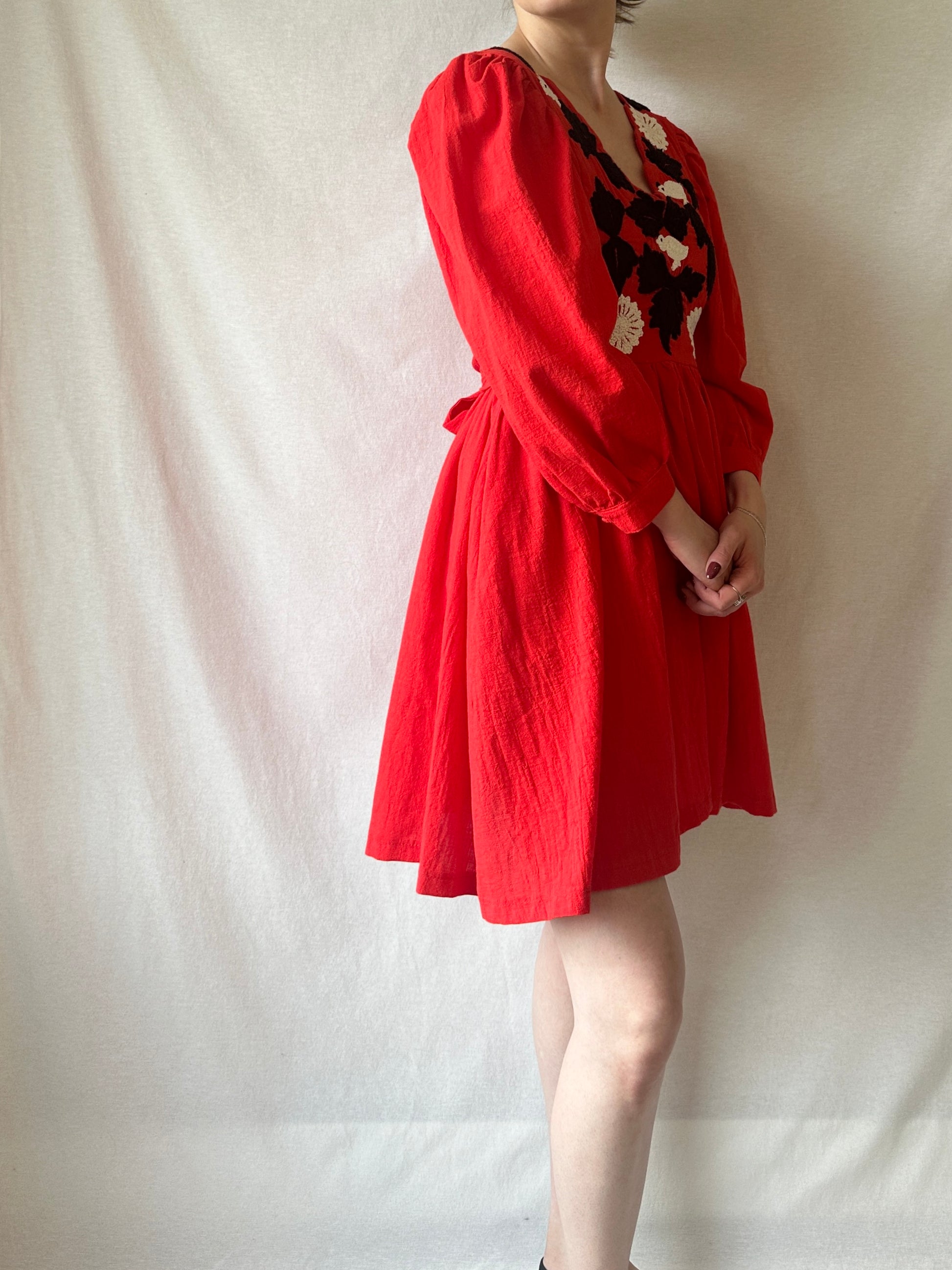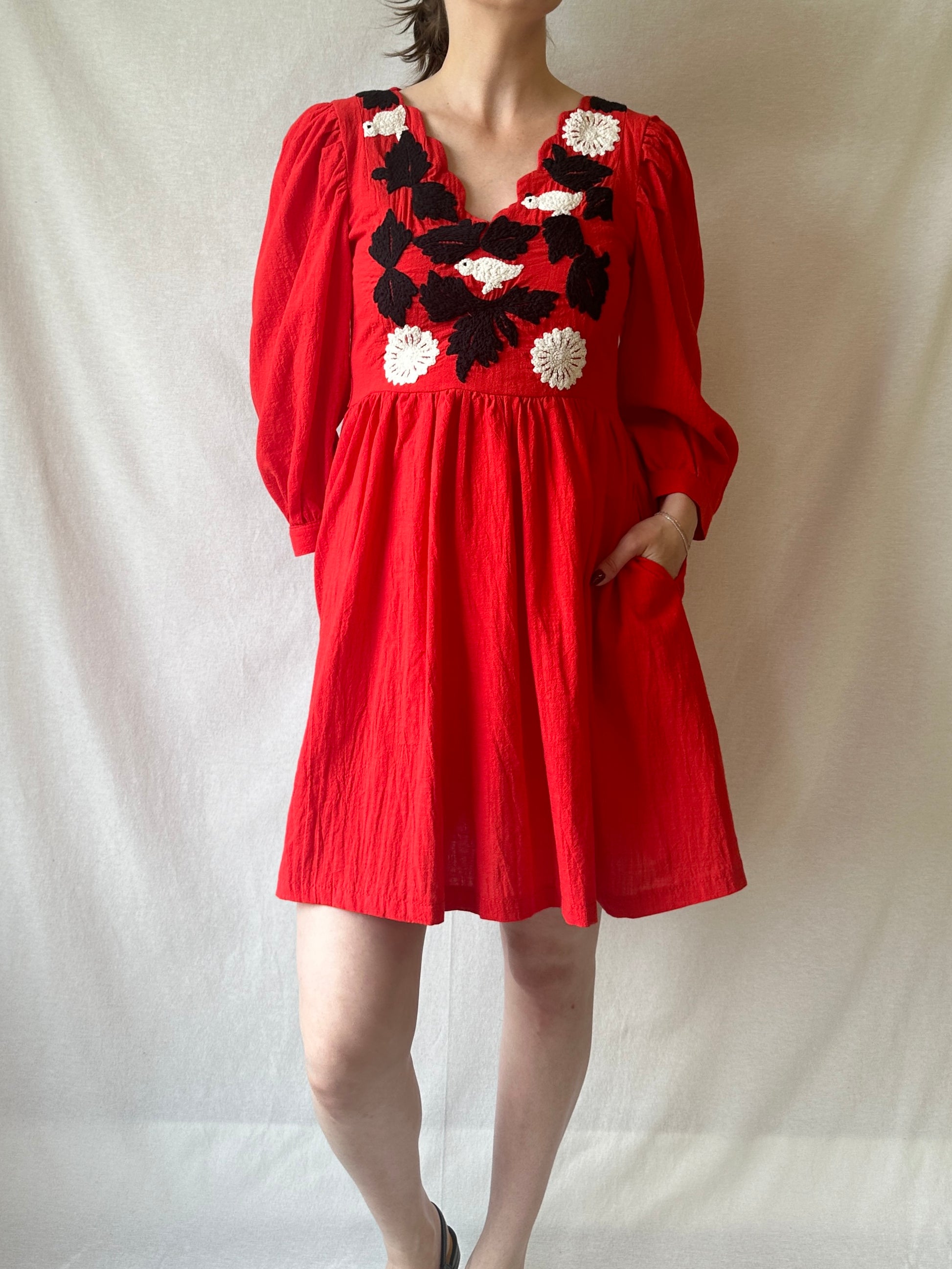 Hand embroidered. Side Pocket. Adjustable waist strap. Invisible zipper at the back.