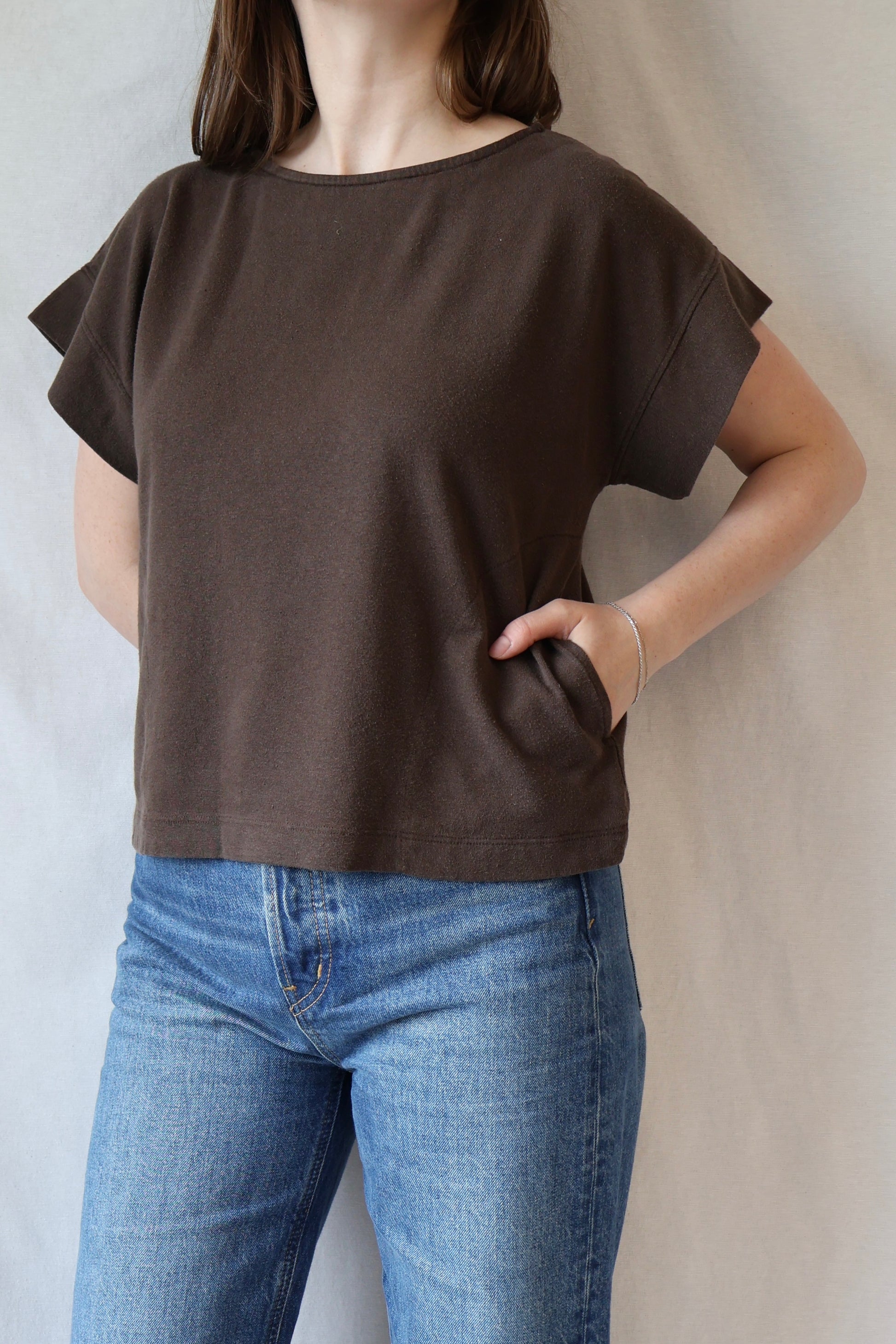 For all the pocket lovers: we see you. A boxy shape and slightly slubby texture with two slim pockets to stash the moonbeams and mushrooms you collect.