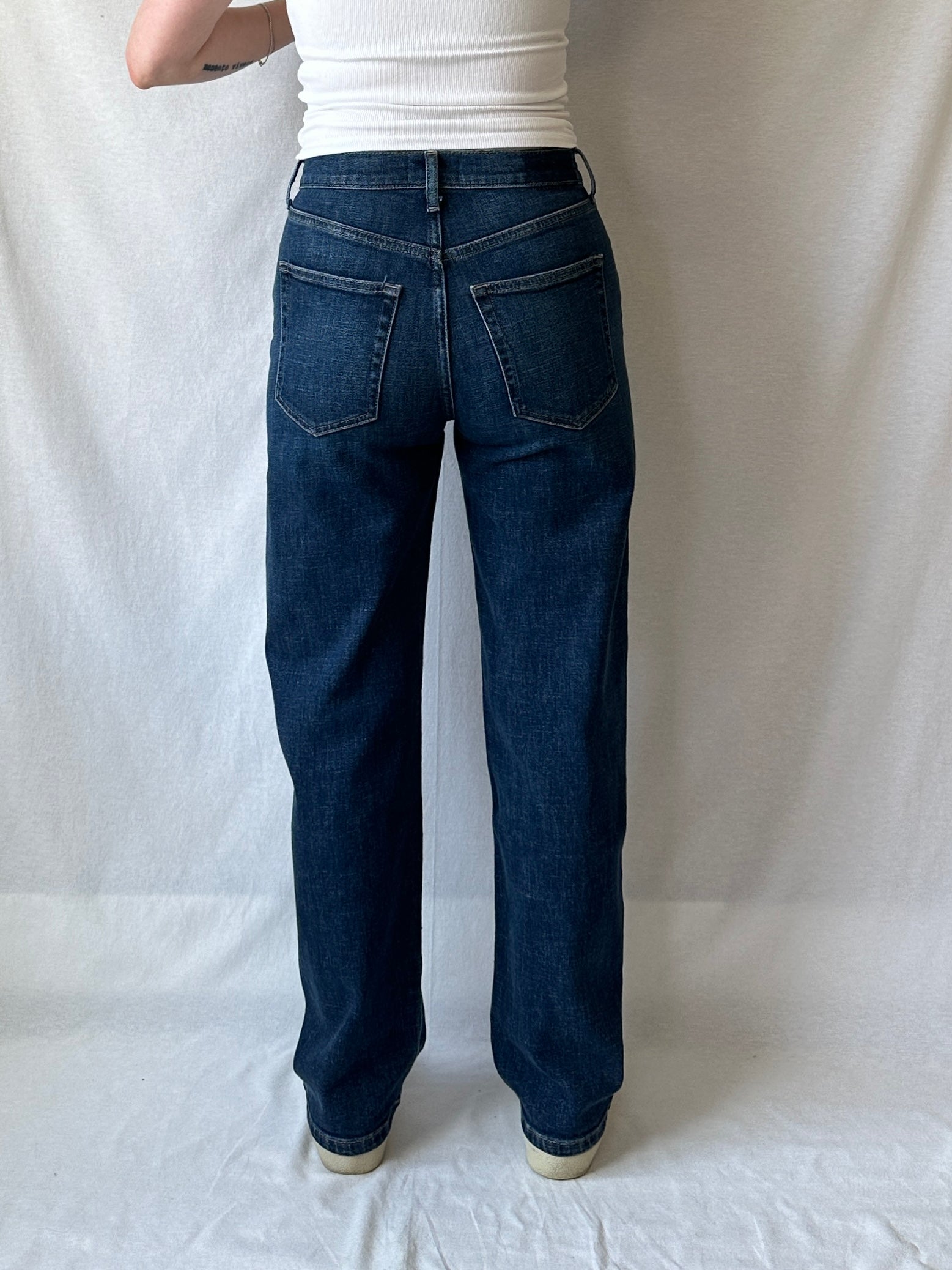 Hannah is wearing size 26.