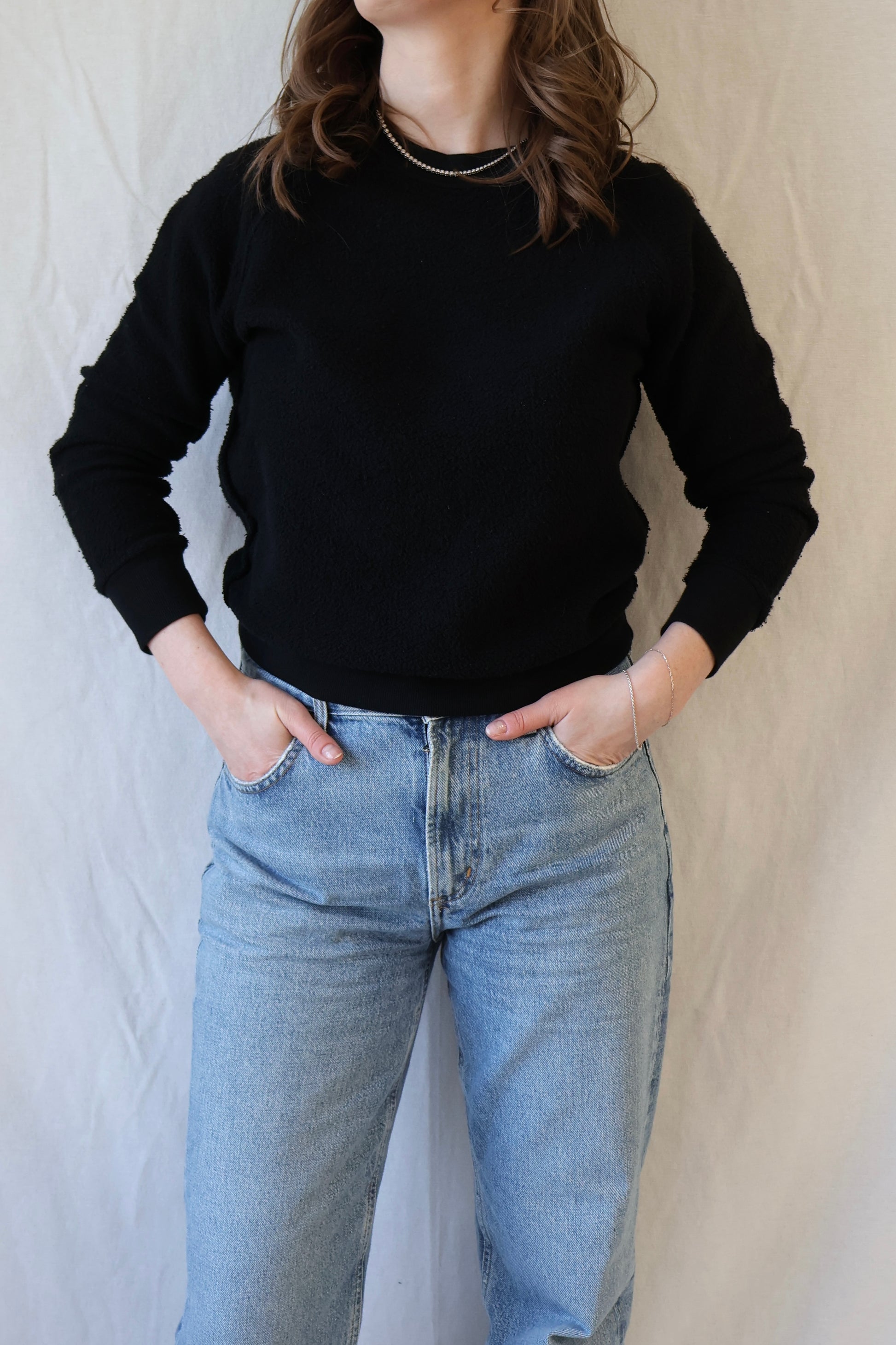 fit: slightly shrunken; size up for a more relaxed fit or take your true size for a closer fit. also known for its’ signature bracelet-length sleeves. it hits just above the wrist so you can perfectly show off your favorite jewelry and watch. Hannah wears size S.